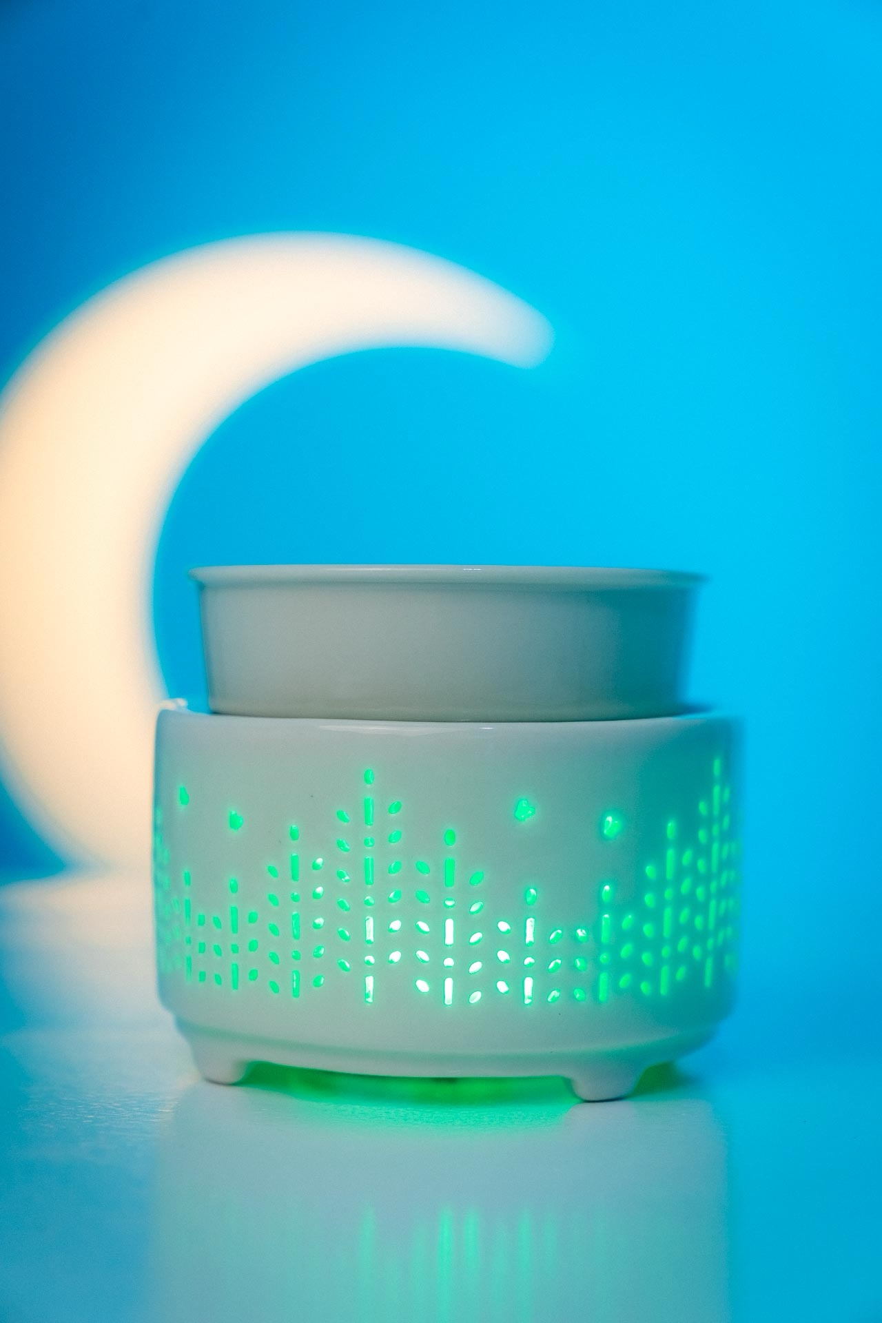 Transforma la energía de tu espacio con este calentador de cerámica 2 en 1. No solo libera el aroma de tus ceras favoritas de forma segura, sino que funciona como una lámpara de ambiente con 7 colores LED que puedes dejar fijos o en modo «ciclado» para crear una atmósfera mágica y relajante.